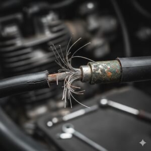 [Imagem Ilustrativa: Close-up de um cabo de aço desfiado na extremidade, perto do terminal.]